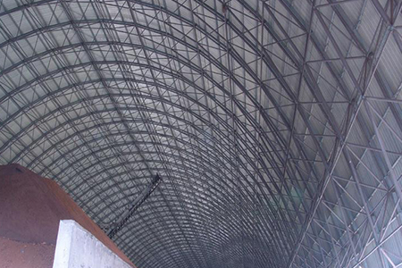 煤場封閉料倉網架結構與其它建設相比,在使用中、設計、施工及綜合經濟方面都具有優勢,造價低,可隨時移動。